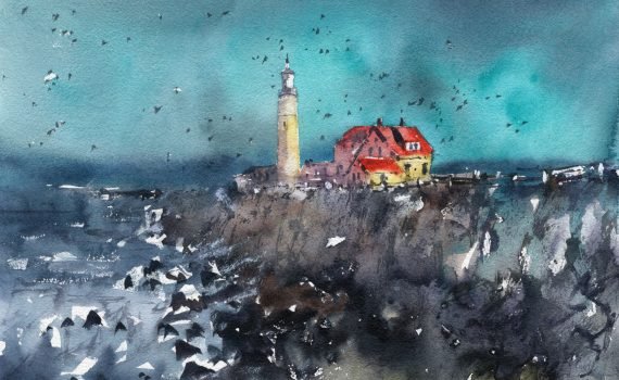 So, you want to learn how to paint a lighthouse? In this video tutorial, I'll go through how to paint this stormy lighthouse scene in less than an hour. This link leads to the full video tutorial.