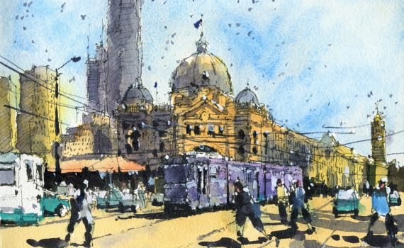 In this watercolor painting for beginners article and workshop, we'll draw and paint Melbourne. Learn to draw and paint urban landscapes.