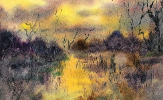 The more I look at this once, the more I like it. It's such a simple landscape but it really highlights the beauty of watercolors. There's something magical about the soft transitions, the light, and seems to fade in and out that seems unique to this medium.