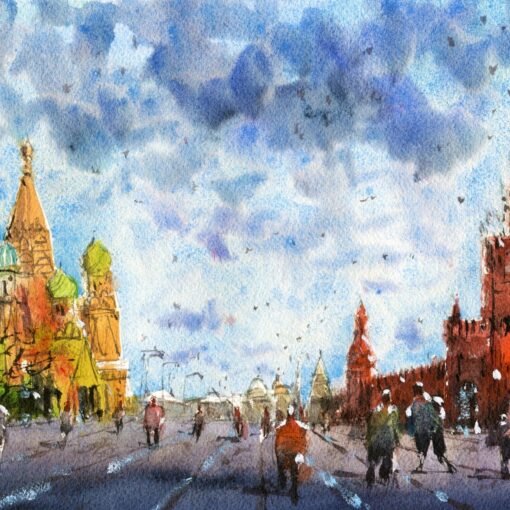 All in all, I enjoyed painting this one, and I like the contrast of the light and dark areas and the simple figures in the center.