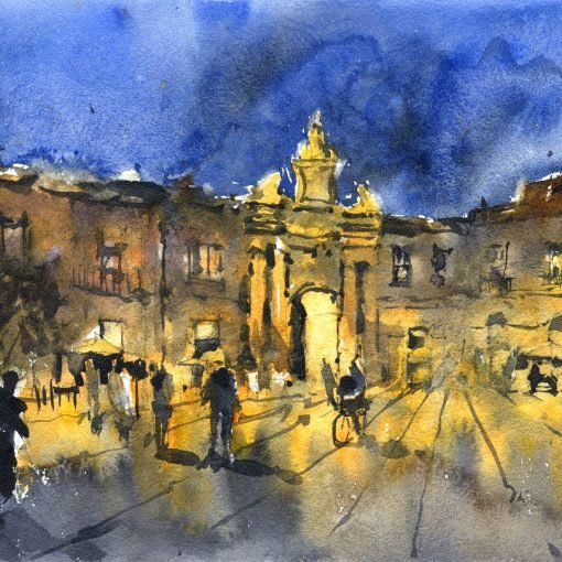 Street Scene – 1/8th sheet (Baohong, 300gsm Cold Press). I’ve added some instructions on how to paint light and shadows in this street scene below.
