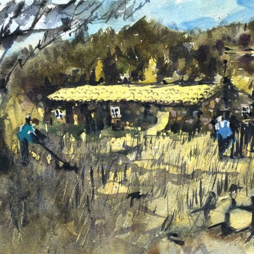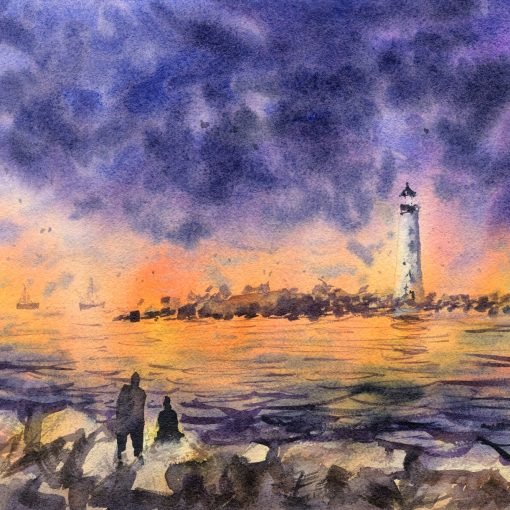 I always try to ‘paint’ the subject in my head prior to starting. Planning what parts you’ll paint first (such as the face) and later (the background) will help you greatly during the painting process. You don’t want to be thinking about compositional elements or whether the subject’s eyes are too close together or not while you’re painting. It divides your attention. This can produce unexpected results. Watercolor painting reminds me of chess at times, planning ahead a few moves to visualize an end result. There are fewer options in watercolor in terms of layering over previous colors, due to the transparent nature of this medium.