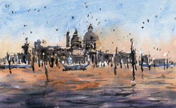 In "Venice: Free Beginner's Watercolor Workshop", I run through the basics of watercolour and how to paint a loose scene of the Santa Maria Della Salute.
