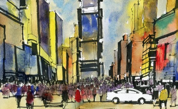 In this article and video, I will go through a New York watercolor tutorial. I'll show you how to use a graphic line and wash style to create a strong and vibrant scene.