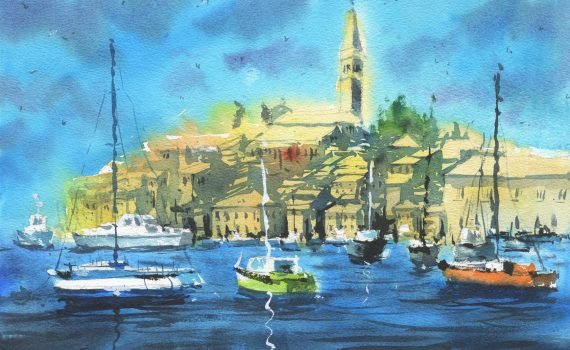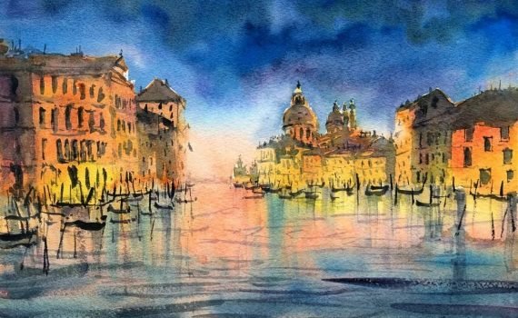 This is my painting of Venice overlooking the Grand Canal (1/4 sheet, cotton Cold Press/medium texture): This was painted in two distinct washes. In the first wash, I painted the sky, warm areas on the buildings, and water in one go. I started with the buildings first, adding some lemon […]