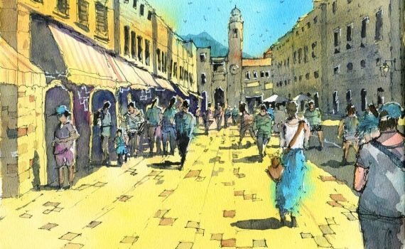 Line and wash is a great way to learn how to draw and paint at the same time! I like drawing and painting outside as it forces you to work fast. Below are a few scenes I painted in a recent free workshop. Quick tips: remember to draw the figures […]