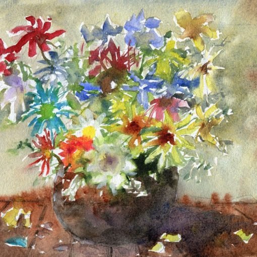 This is the second scene I painted for the live demo. Again I used the same wet-in-wet technique to paint the reflections on the ground.